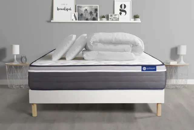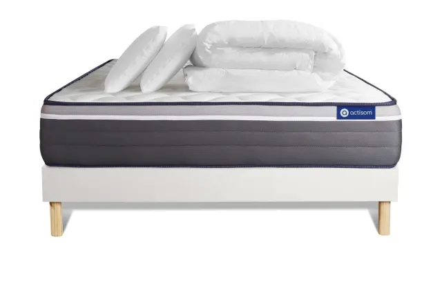 Kompletni paket za posteljo - Vzmetnica 140x200 cm + Vzmetni okvir z letvami (komplet) + 2 vzglavnika + Prevleka - ActiMemo Plus
