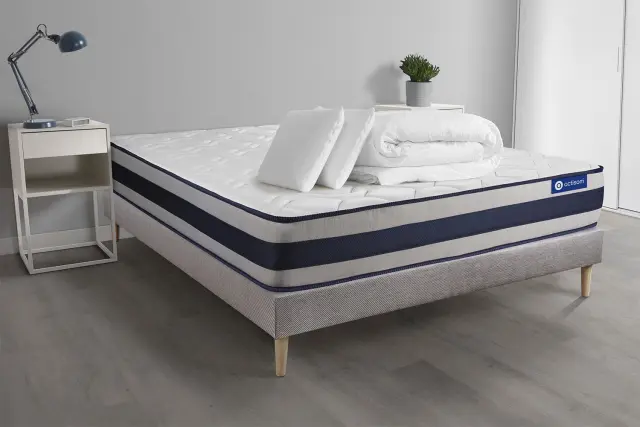 Kompletni paket za posteljo - Vzmetnica 140x200 cm + Vzmetnica z letvami (v kompletu) + 2 vzglavnika + Prevleka - Actimemo Ergo