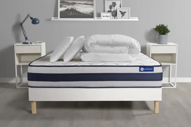 Kompletni paket za posteljo - Vzmetnica 160x200 cm + Vzmetnica z letvami (v kompletu) + 2 vzglavnika + Prevleka - Actimemo Ergo