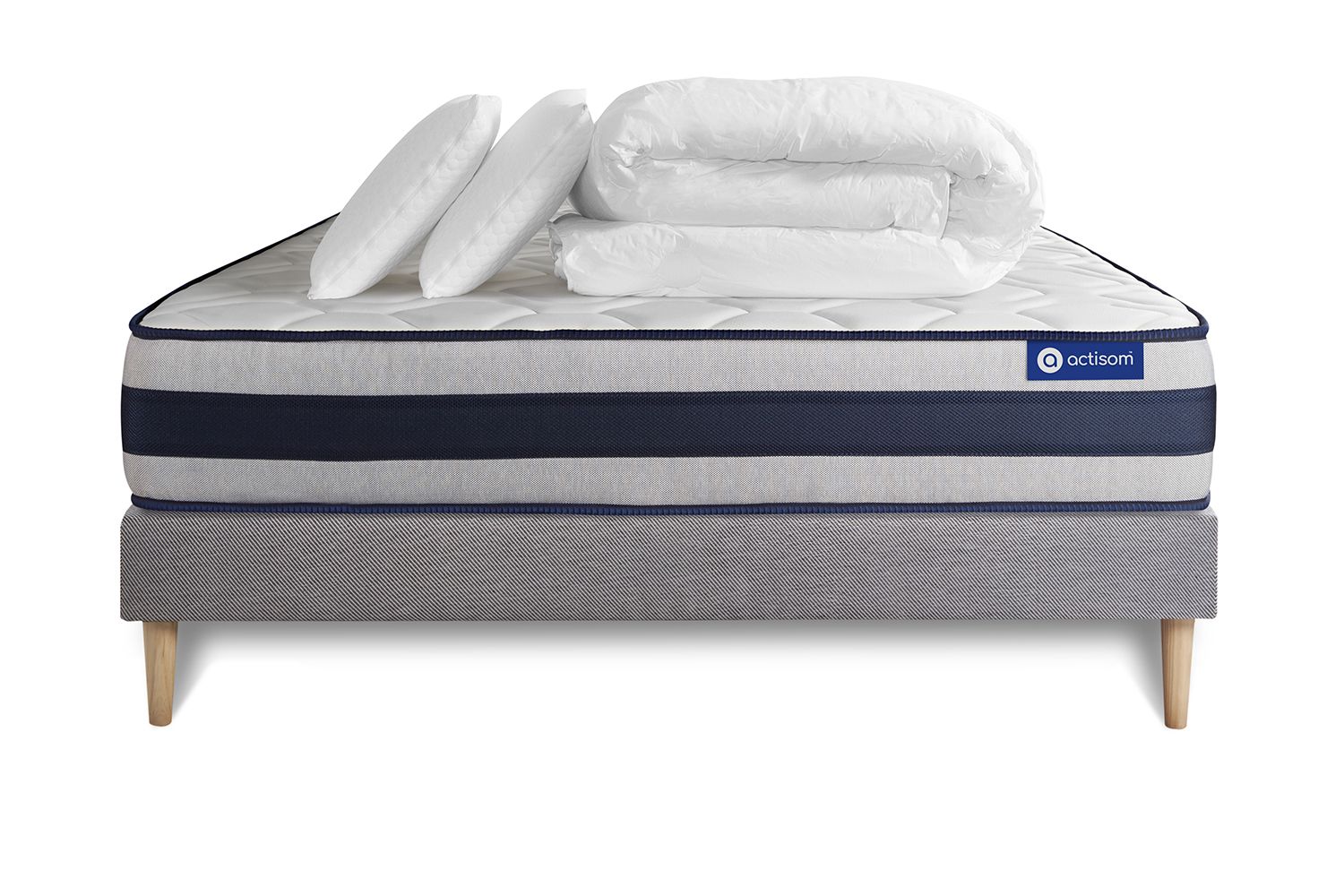 Kompletni paket za posteljo - Vzmetnica 180x200 cm + Vzmetnica z letvami (v kompletu) + 2 vzglavnika + Prevleka - Actimemo Ergo