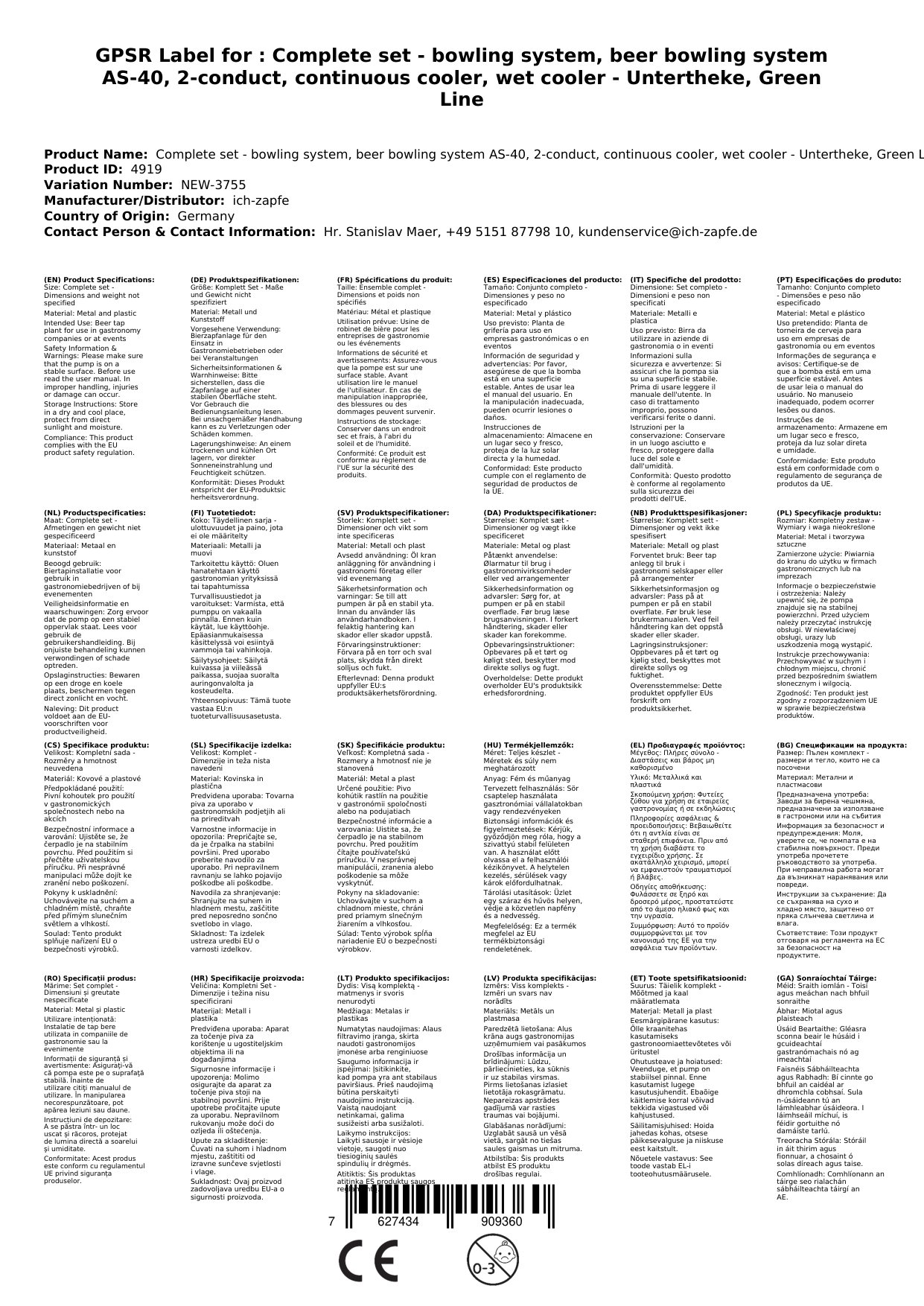 Vključuje: regulator tlaka CO2 za 3 bar, 2 kg CO2 jeklenko, 1,5 m CO2 cevi, 2 m bierskih cevi John Guest z nastavki, neizgubljiv ključ za CO2. Ročaji po izbiri: trikotni, brez ročajev, adapterji. Teža 18 kg, napajanje 230V, 50Hz, 292W, 1/8 PS.