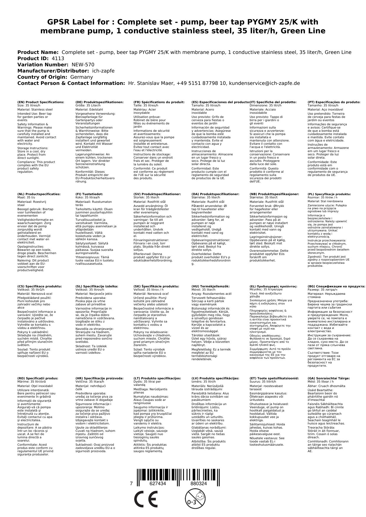 Kompletni set naprave za črpanje piva PYGMY 25/K z membransko črpalko ponuja popolno rešitev za serviranje piva na zabavah in dogodkih. Ta enovodna suha hladilna naprava iz nerjavečega jekla zagotavlja 35 litrov ohlajenega piva na uro pri 10°C temperaturni razliki.