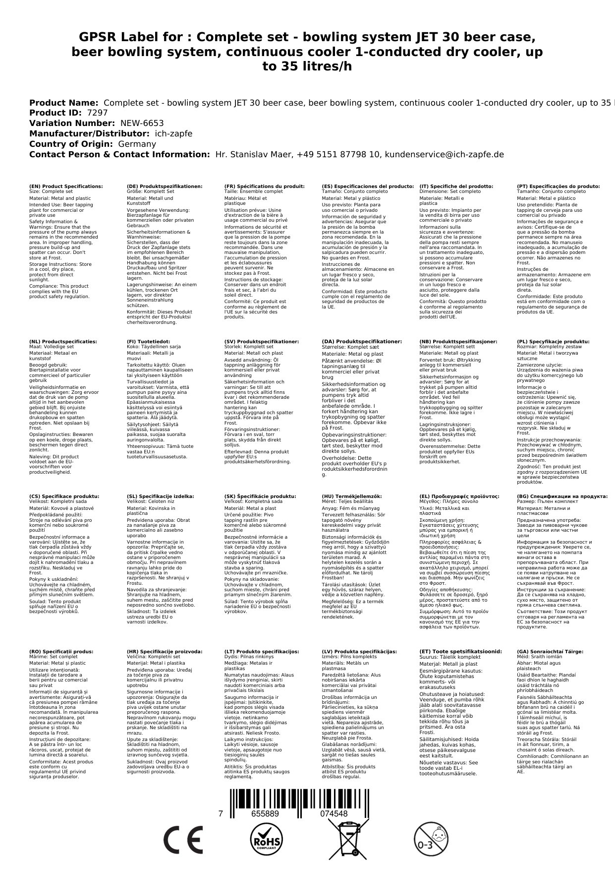 Naprava JET 30 je enokanalni suhi hlajenje iz nerjavečega jekla z zmogljivostjo do 35 litrov na uro. Hitra namestitev: 3 minute razpakiranja, 2 minuti postavitve, 1 minuta priklopa za neskončno uživanje v hladnem, svežem pivu.