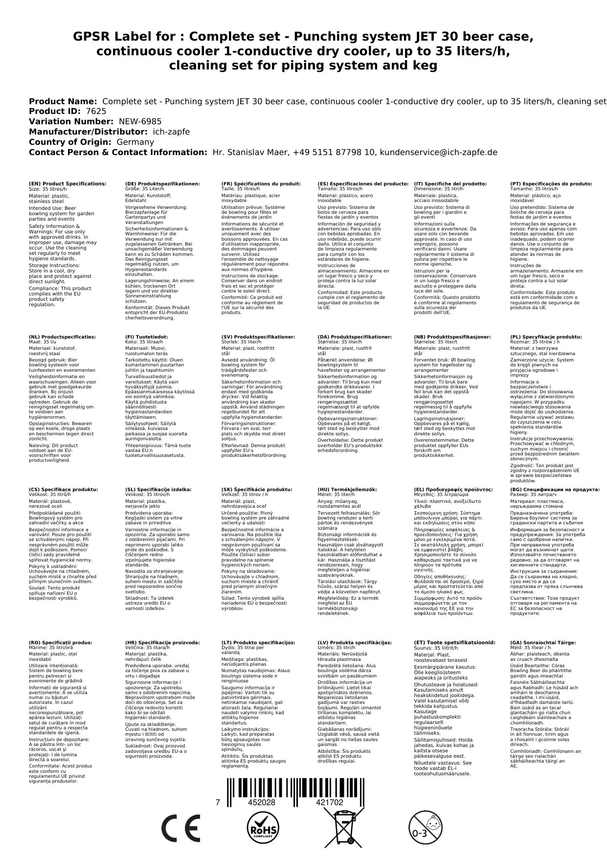 Kompletni set za črpanje piva JET 30 ponuja vse potrebno za profesionalno hlajenje in črpanje piva. Namenjen je domači uporabi, vrtnih zabavam in majhni komercialni dejavnosti.