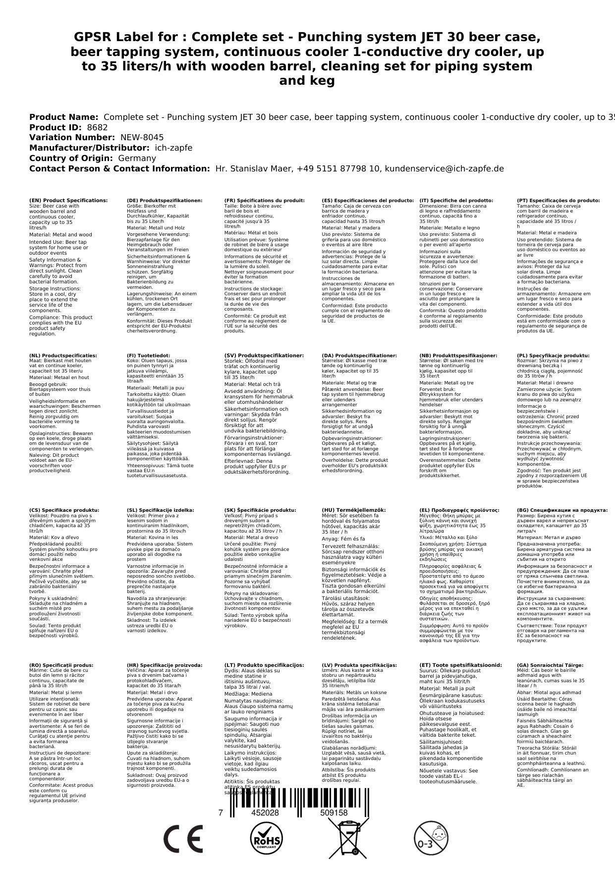 Kompletni set za napravo JET 30 za črpanje piva je zasnovan za profesionalno hlajenje in črpanje piva v domačem okolju, na vrtnih zabavah ali majhni komercialni uporabi. Set vključuje vse potrebno za takojšnjo uporabo.