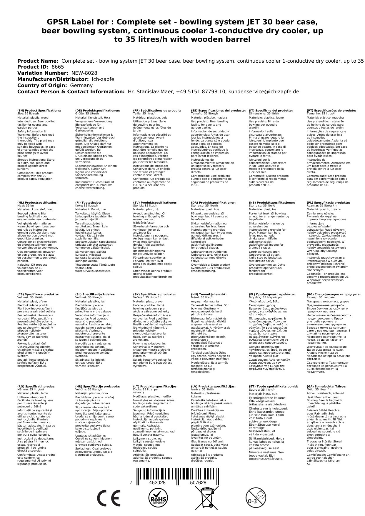 Ta komplet je zasnovan za enostavno in učinkovito hlajenje ter črpanje piva. Naprava JET 30 je enokanalni zračni hladilnik iz nerjavečega jekla, ki doseže do 35 litrov/h. Primerna je za domačo uporabo, vrtne zabave in majhno komercialno rabo.