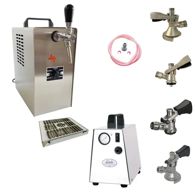 Enostavna montaža: izpakirajte, priključite regulator tlaka na CO2 jeklenko, povežite cevi, odprite sod, nastavite tlak in priključite na elektriko. Uživajte v hladnem pivu takoj.