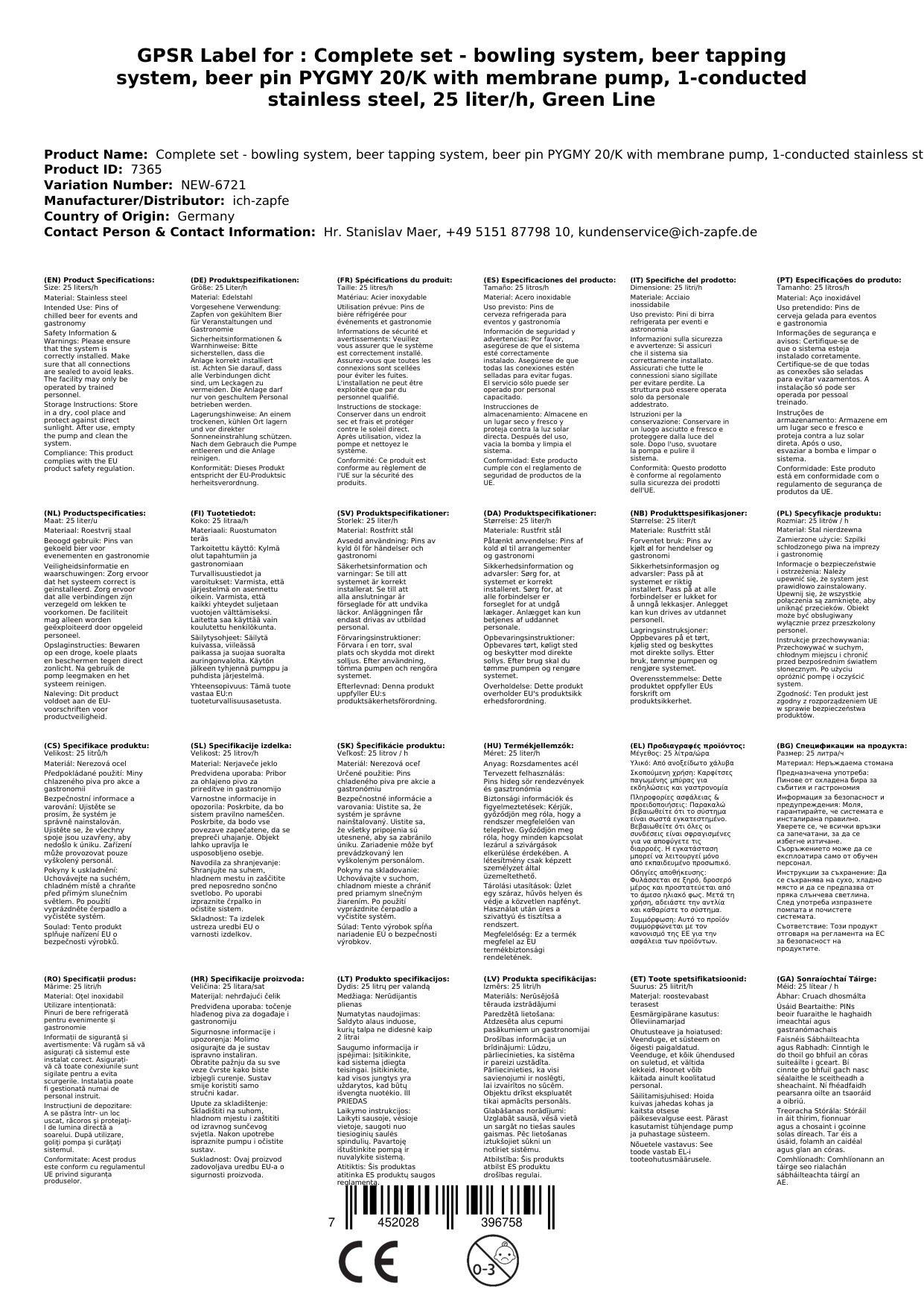 Kompletni set za črpanje piva PYGMY 20/K je idealna izbira za ljubitelje piva, ki želijo profesionalni domači izliv. Ta napredna naprava združuje membransko črpalko in enokanalni sušilni hladilnik iz visokokakovostnega nerjavečega jekla, kar zagotavlja zanesljivo delovanje brez potrebe po ogljikovem dioksidu. S zmogljivostjo 25 litrov ohlajenega piva na uro in nastavljivo temperaturo med +3 in +10 °C bo vaše pivo vedno na idealni servisini temperaturi.