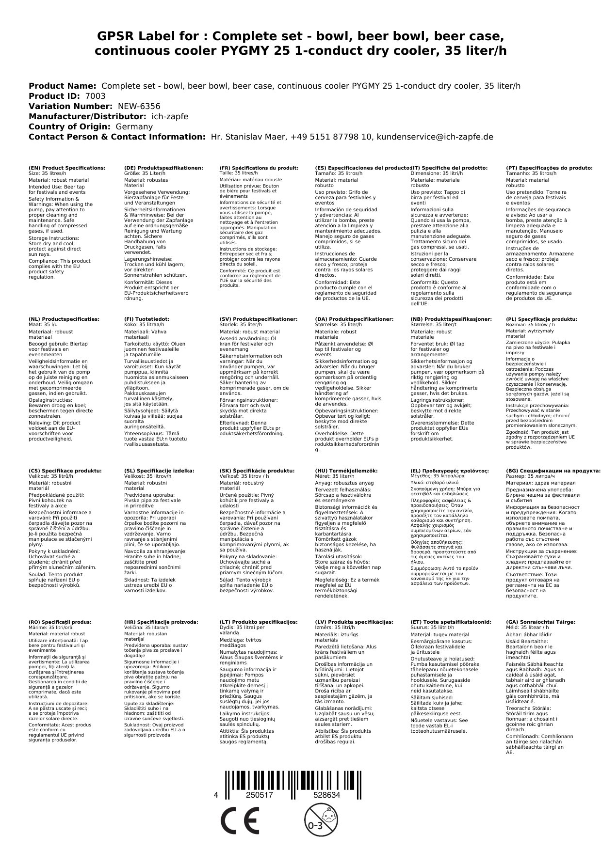 Kompaktni in prenosni set za točenje piva PYGMY 25 je idealna rešitev za ljubitelje svežega piva. Ta enokanalna suha hlaječa naprava iz nerjavečega jekla zagotavlja zmogljivost 35 litrov na uro pri 10 °C temperaturni razliki.