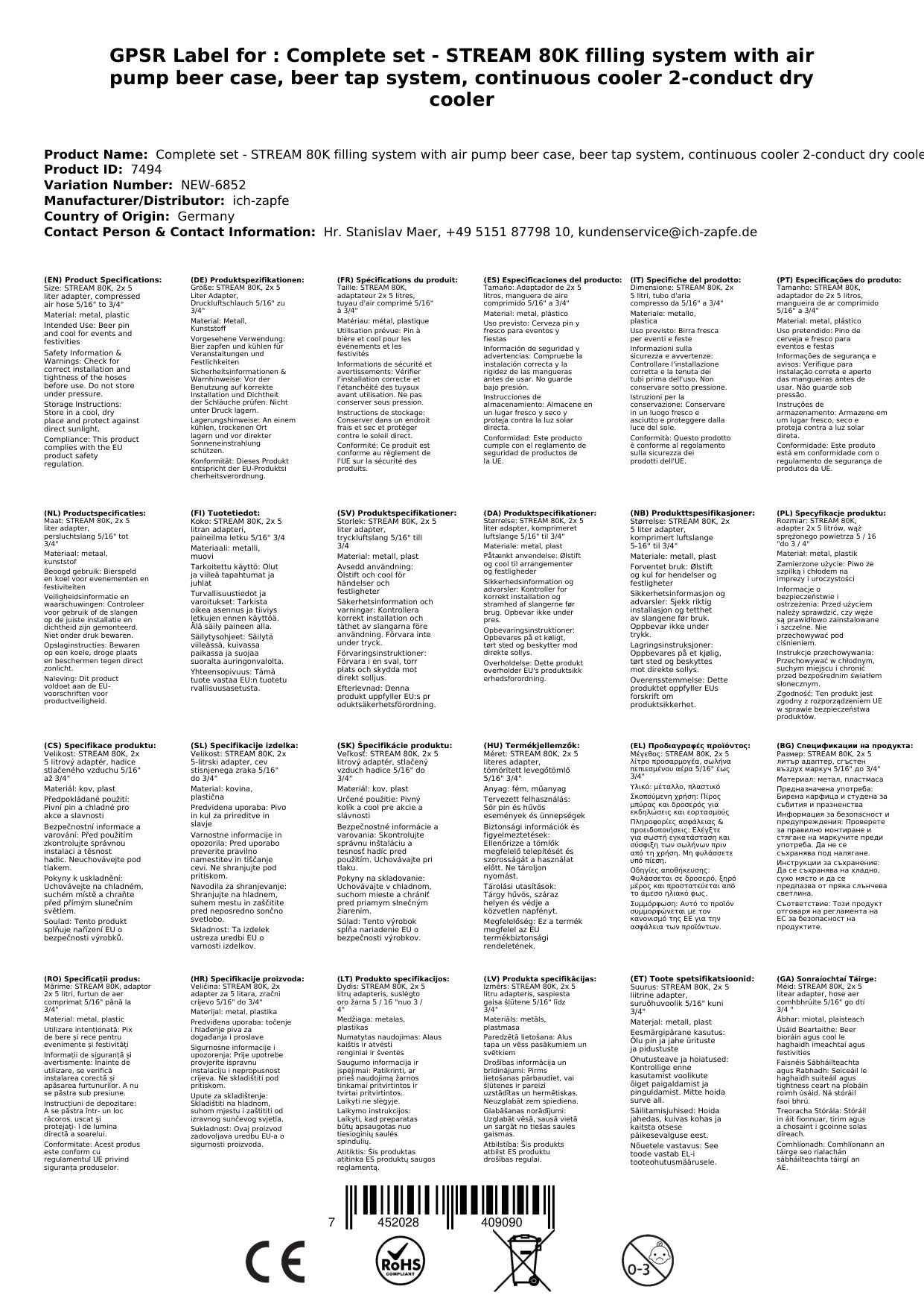 Ta kompleten set je zasnovan za enostavno in učinkovito serviranje piva z vrhunskim hlajenjem. STREAM 80K je 2-vodna pivo črpalka z zračno črpalko, kovčkom za prenos in suhim prehodnim hlajenjem, ki zagotavlja do 90 litrov na uro pri 10°C temperaturni razliki. Idealna za domačo uporabo, vrtne zabave ali srednje poslovne namene, kjer želite profesionalno kakovost.