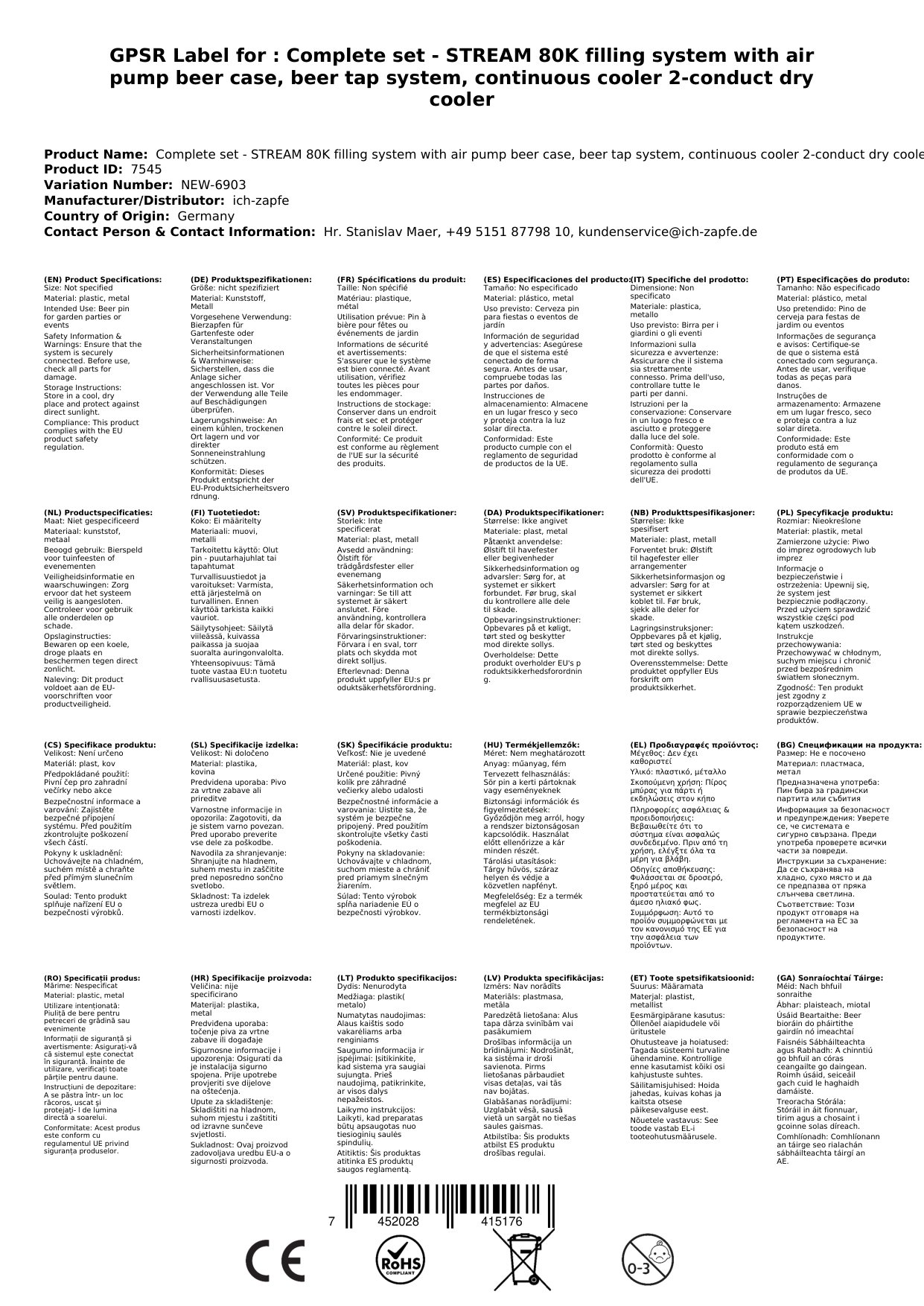Naprava je primerna za mizo ali pod mizo, z zmogljivostjo 170-180 kozarcev (0,5 L) na uro. Idealna za domačo uporabo, zabave ali manjše dogodke, kjer želite sveže in hladno pivo brez napora.