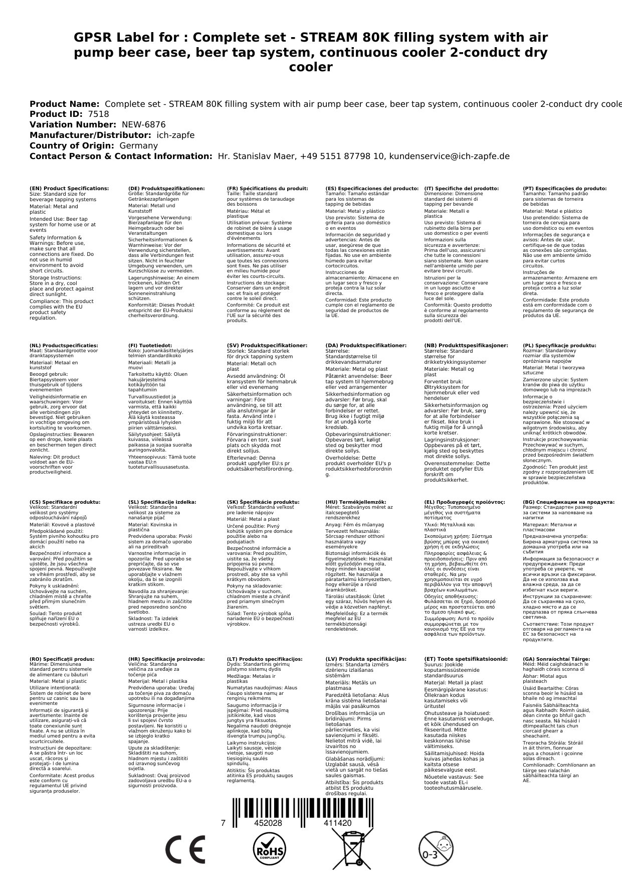 Enostavna namestitev: Izpraznite napravo, pritrdite regulator tlaka na steklenico CO2, priključite cevi, odprite sod, nastavite tlak in priključite na elektriko. Uživajte v hladnem pivu v nekaj minutah. Naprava je kompaktna in mobilna, idealna za različne priložnosti. Redno čiščenje z ustreznimi seti zagotavlja higieno in dolgo obstojnost.