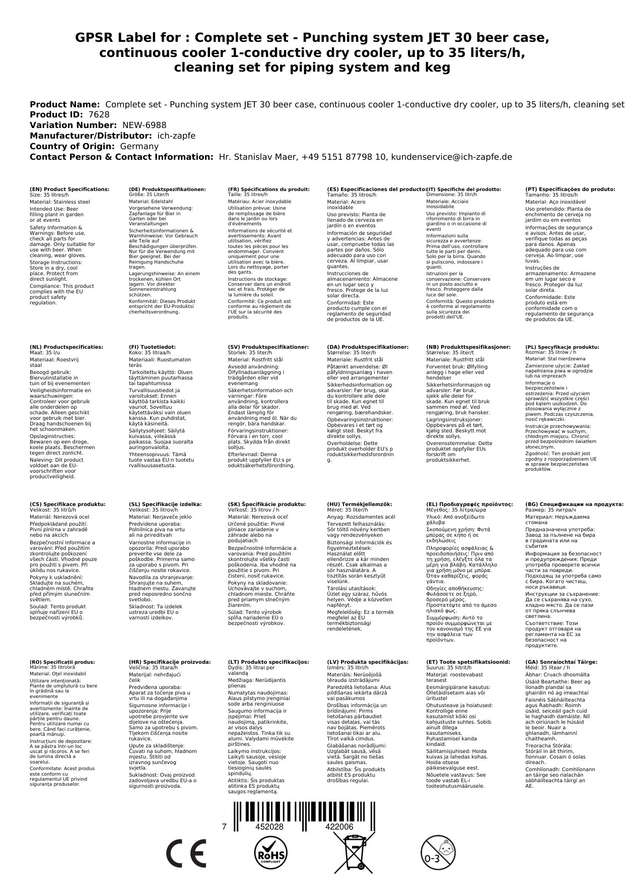 Kompletni set za črpanje piva JET 30 ponuja vse potrebno za enostavno in učinkovito črpanje hladnega piva. Ta enokanalna naprava z kovčkom za pivo in suhim hlajenjem je zasnovana za domačo uporabo, vrtne zabave ali majhno komercialno okolje.