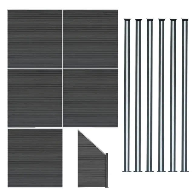 Ograjni panel, izdelan iz 9 medsebojno povezanih WPC (leseno-plastični kompozit) letvic, je zasnovan tako, da se brez težav sestavi in tvori močno, enotno strukturo, ki je zelo vzdržljiva in ne zahteva veliko vzdrževanja. Ko je ograja sestavljena, je impresivna, visoka 185 cm in 965 cm, kar ponuja zasebnost in drzen, sodoben videz na vrtu.