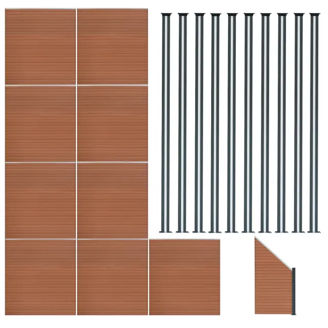 Ograjni panel, izdelan iz 9 medsebojno povezanih WPC (leseno-plastični kompozit), je zasnovan tako, da se brez težav sestavi in tvori močno, enotno strukturo, ki je zelo vzdržljiva in ne zahteva veliko vzdrževanja. Ko je ograja sestavljena, je impresivna, visoka 185 cm in 1657 cm, kar ponuja zasebnost in drzen, sodoben videz na vrtu.