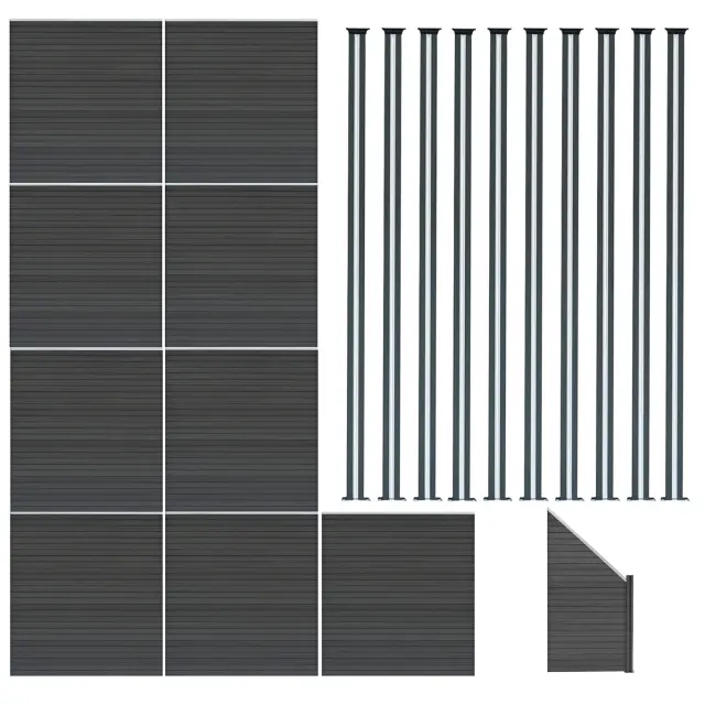 Ograjni panel, izdelan iz 9 medsebojno povezanih WPC (leseno-plastični kompozit), je zasnovan tako, da se brez težav sestavi in tvori močno, enotno strukturo, ki je zelo vzdržljiva in ne zahteva veliko vzdrževanja. Ko je ograja sestavljena, je impresivna, visoka 185 cm in 1657 cm, kar ponuja zasebnost in drzen, sodoben videz na vrtu.
