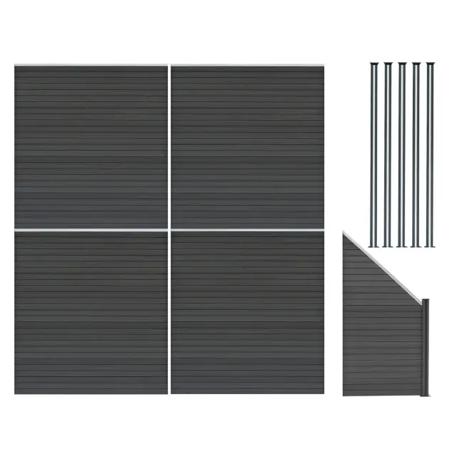 Ograjni panel, izdelan iz 9 medsebojno povezanih WPC (leseno-plastični kompozit) letvic, je zasnovan tako, da se brez težav sestavi in tvori močno, enotno strukturo, ki je zelo vzdržljiva in ne zahteva veliko vzdrževanja. Ko je ograja sestavljena, je impresivna, visoka 185 cm in 772 cm, kar ponuja zasebnost in drzen, sodoben videz na vrtu.