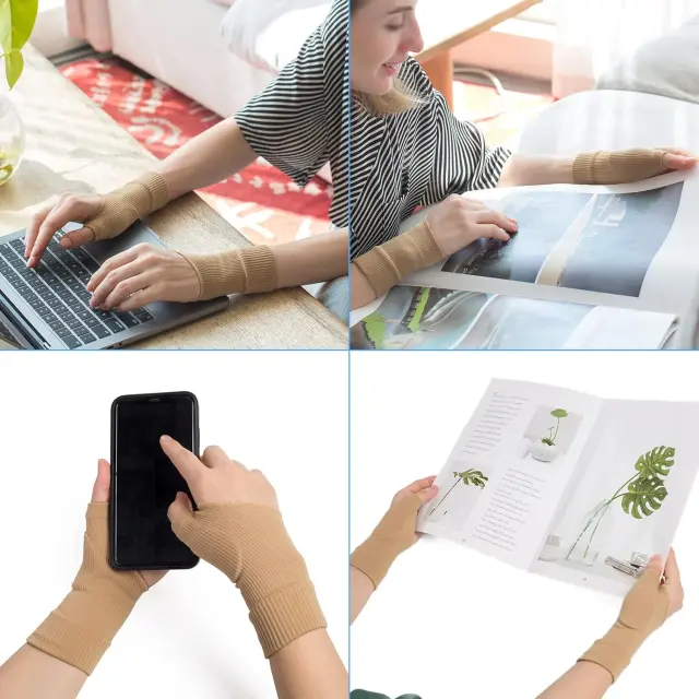 Udobno in zračno: zapestnica, ki podpira palec, kompresijski rokavi za zapestje so izdelani iz najkakovostnejšega najlona in lateksa, ki sta elastična in zračna. Ta rokavica je lahka in odporna proti obrabi, z notranjo folijo iz lateksa, zaradi česar je udobna za nošenje v vsakdanjem življenju in vam daje prijetno izkušnjo. LAŽANJE BOLEČIN V ROKAH: Podpora za palec z mehko gel blazinico zagotavlja nežno podporo pri poškodbah rok. Lajšanje bolečin v sklepih, podpora za artritis sklepov palca za ljudi z artritisom, tendinitisom, revmatizmom, bolečinami v sklepih, poškodbami rok ali nategi in zvini zapestja. Široka uporaba: rokav za podporo zapestja je prilagodljiv, prilegajoč se in udoben za nošenje, ne le izgleda lepo, primeren pa je tudi za dnevne aktivnosti in šport, vključno z vrtnarjenjem, ročnim delom, golfom, tenisom, košarko, odbojko, jogo, badmintonom, pustolovščinami na prostem itd.