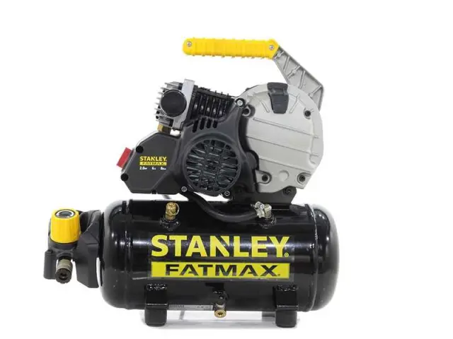 Stanley - 6L kompresor 2 KM 1,5 kW 10 barov HY227-8-6E Prednosti tega kompresorja Stanley FHY227/8/6E so: Ročaj integriran v ohišje za lažji transportLahek rezervoar 6 litrov.Gumijaste nogice zagotavljajo odlično stabilnost. Tehnične specifikacije kompresorja Stanley FHY227/8/6E: Moč: 2/1,5kW Največji pritisk: 8/116 Pretok zraka: 180/6,35 Napetost: 230/50