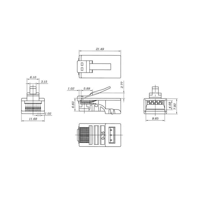 Internet konektor RJ45 CAT6 UTP, ki deluje s trdnim ali mehkim kablom.