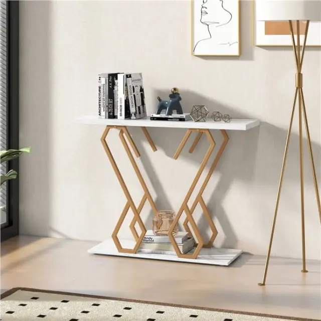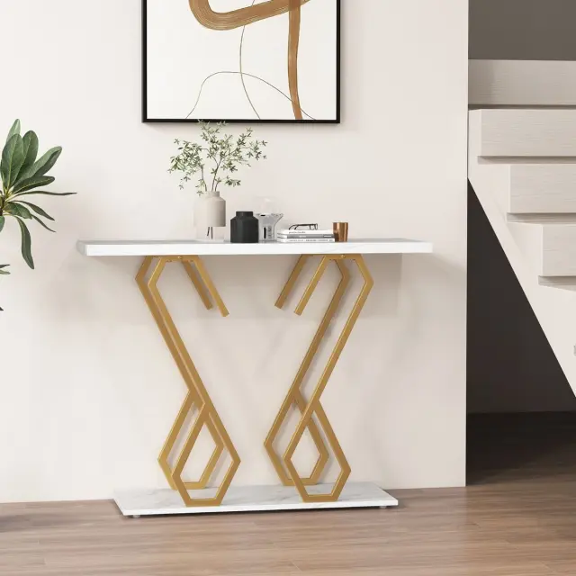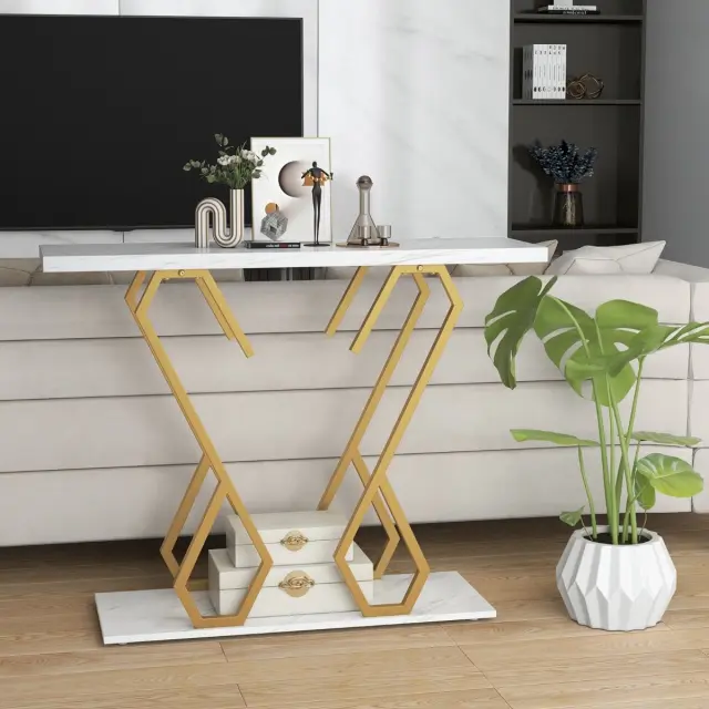 Konzola z belim imitacijo marmorja 100 x 30 x 79 cm