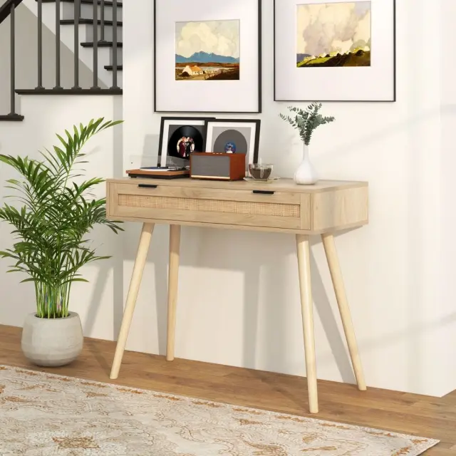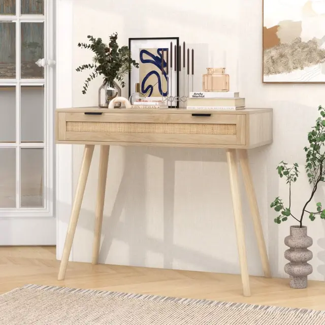 Vsestranska uporaba: Uporabljate jo lahko kot elegantno kredenco, kompaktno stojalo za telefon ali elegantno toaletno mizico v spalnici. Zaradi svoje prilagodljivosti in brezčasne privlačnosti je vsestranski in nepogrešljiv kos pohištva za različne prostore v vašem domu.