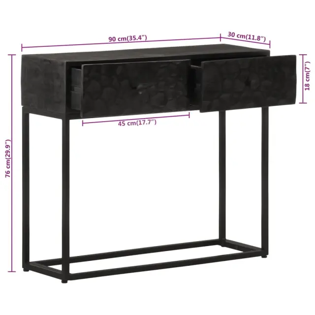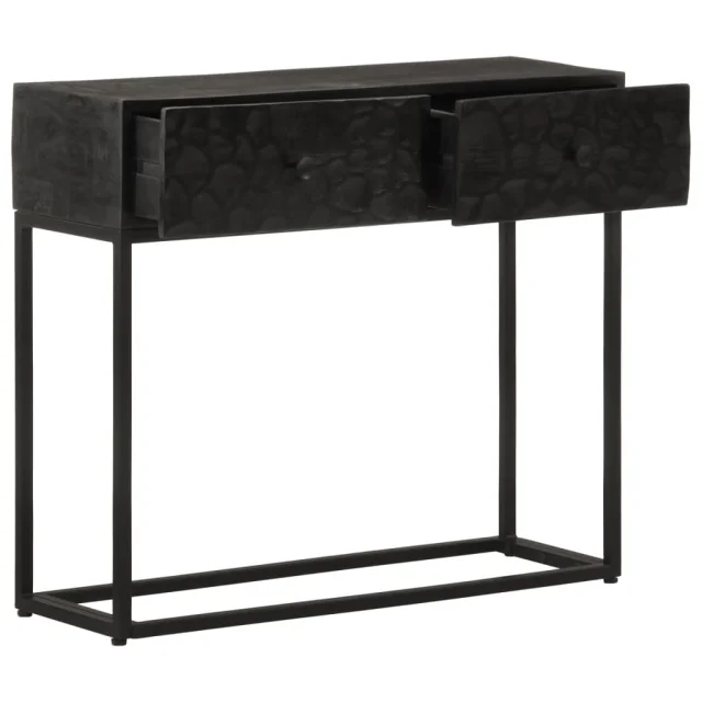 konzolna miza - miza ob steni črna 90x30x76 cm trden mangov les in železo
