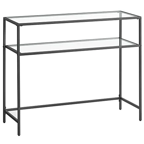 Konzolna mizica, mizica iz kaljenega stekla, moderna sedežna garnitura ali mizica za predsobo, jeklen okvir, 2 polici, nastavljive noge, za dnevno sob
