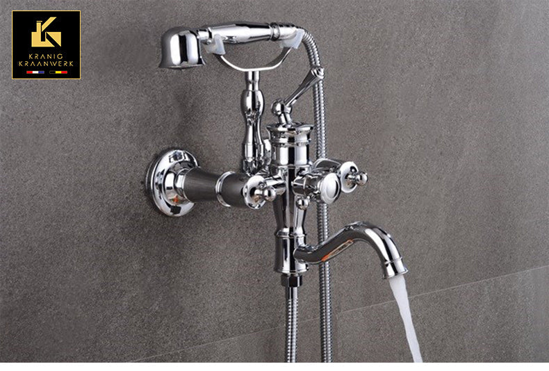 Kopalna pipa z ročno prho | Montaža na steno | Van de Laer | Krom in črna