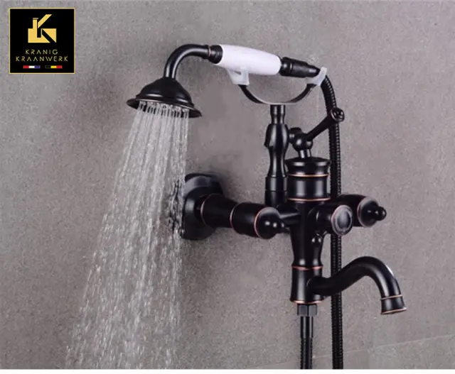 Kopalna pipa z ročno prho | Montaža na steno | Van de Laer | Krom in črna