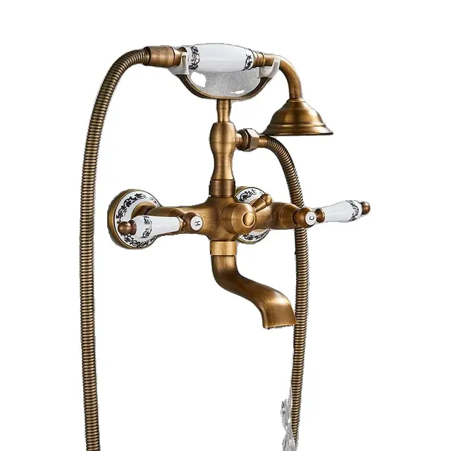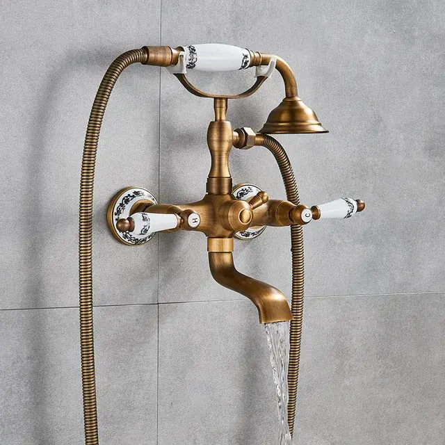 Kopalna tuš pipa, dizajn z dvema ročajema, konstrukcija iz mesinga, Antik medenina
