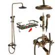 • Vsestranska zasnova: Starinsko medeninasta kopalna pipa z policami, dvojni ročaji, starinski slog. 8" premer dežnika, 5-17cm (3"--7") nastavljiv osrednji del pipe, 80-120cm(31"-47") skupna višina, namestitev s 3 luknjami.