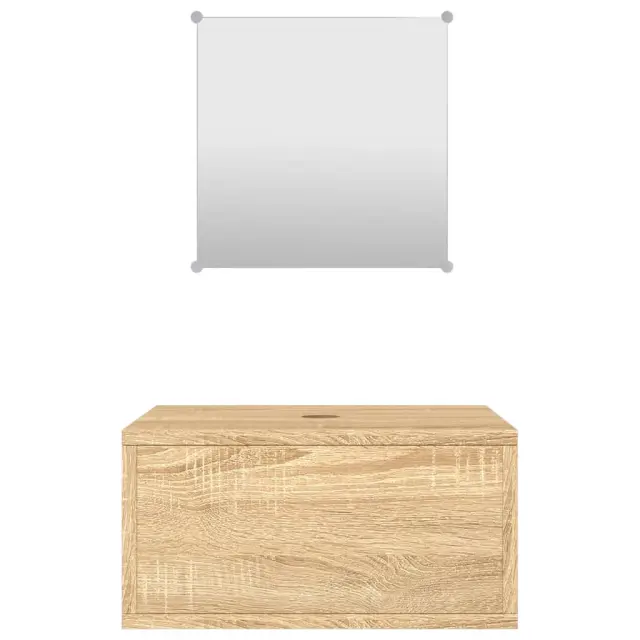 Ta trendovski komplet kopalniškega pohištva je odličen dodatek k vaši kopalnici, saj ji daje urejen in osupljiv videz! Vzdržljiv material: Inženirski les se ponaša z izjemno kakovostjo, gladko površino ter močjo, stabilnostjo in odpornostjo na vlago. Funkcija namestitve na steno: Omarica ne zavzame prostora na tleh. Enostavno jo lahko obesite na steno. Praktično ogledalo: Uporabite priloženo ogledalo za urejanje dnevne garderobe. Prav tako dodaja odličen videz vašemu domu. Dobro je vedeti:Umivalnik ni vključen v dobavo.Odtok je vključen v dobavo.Vijaki in čepi za notranjost stene niso priloženi. Svetujemo vam, da poiščete in uporabite vijake in zatiče, ki so primerni za vaše stene. Če niste prepričani, se lahko posvetujete s strokovnjakom. Preberite in upoštevajte vse korake v navodilih.Barva: Hrast Material: Inženirski les, steklo Dimenzije stenske omarice za umivalnik: 40 x 34 x 20 cm (D x Š x V) Velikost ogledala: 30 x 30 cm (D x V) Potrebno sestavljanje: DaPaket vsebuje:1 x Stenska omarica 1 x Ogledalo
