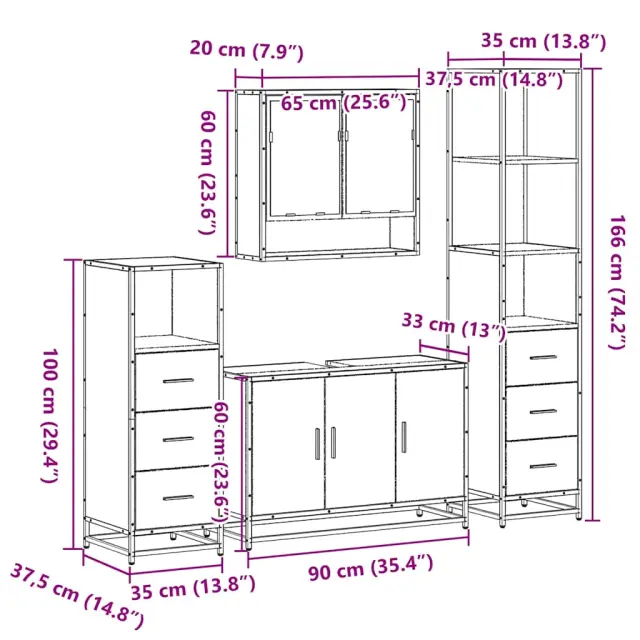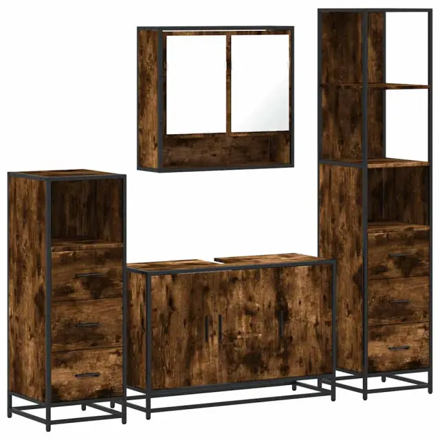 Kopalniška garnitura - Kopalniški sestavi 4-delna dimljeni hrast inženirski les