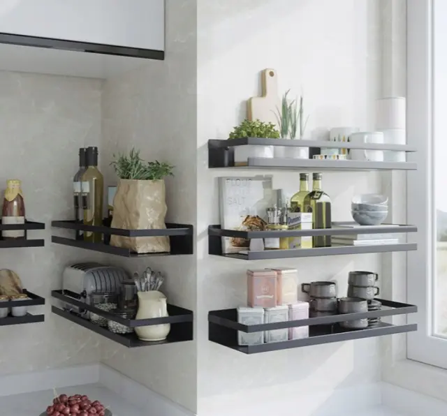 VSESTRANSKA UPORABA – lahko ga namestite v kopalnico kot polico za kozmetiko ali toaletni papir. Polica se bo obnesla v marsikaterem prostoru, tudi v kuhinji, kot organizator za začimbe ali kot okras za posode z rižem, kosmiči, sladkorjem, kavo itd.