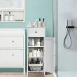 Širok spekter uporabe: Zaradi osvežujočega belega videza je ta talna omarica preprosta in elegantna, zato se dobro poda k različnim notranjim prostorom. Zato se lahko uporablja tudi kot stranska ali nočna omarica in je primerna za kopalnice, dnevne sobe, spalnice in druge prostore.