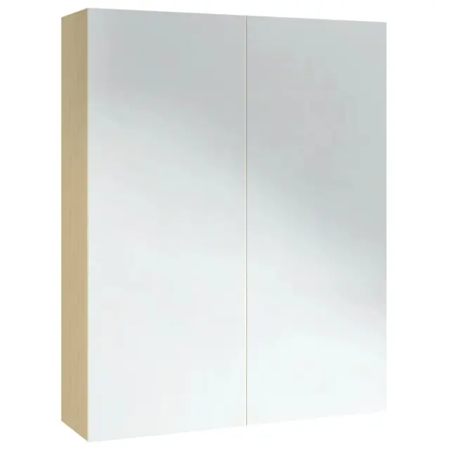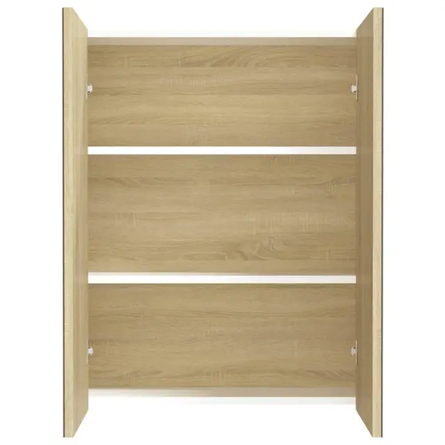 Kopalniška omarica - Kopalniški kabinet z ogledalom 60x15x75 cm MDF bela in hrast