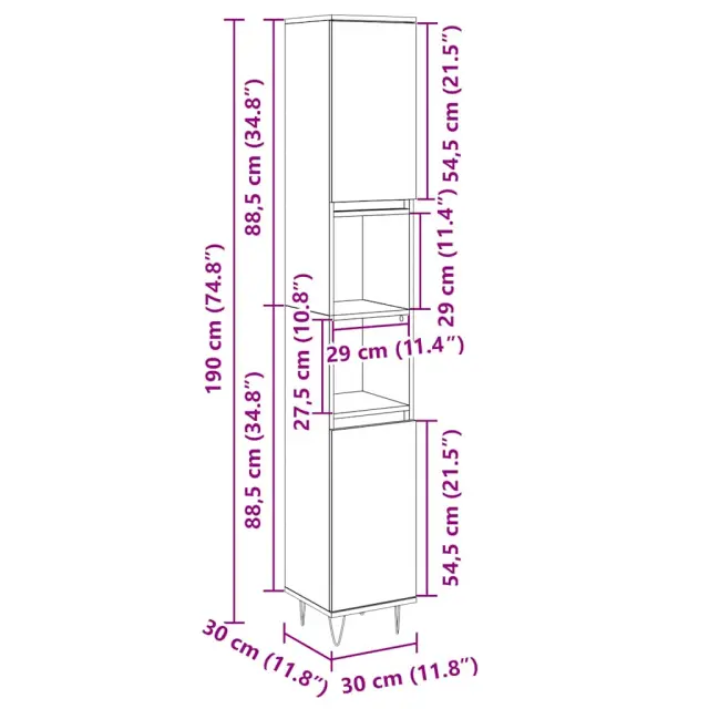 Kopalniška omarica - Kopalniški kabinet sonoma hrast 30x30x190 cm inženirski les