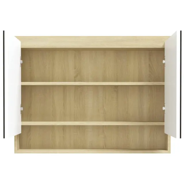Kopalniška omarica - Kopalniški kabinet z ogledalom 80x15x60 cm MDF bela in hrast