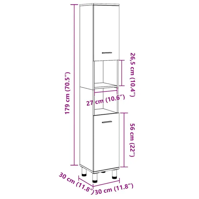 Kopalniška omarica - Kopalniški kabinet betonsko siva 30x30x179 cm iverna plošča