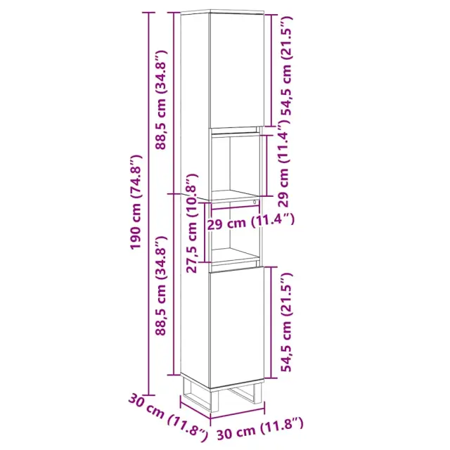 Kopalniška omarica - Kopalniški kabinet sonoma hrast 30x30x190 cm inženirski les