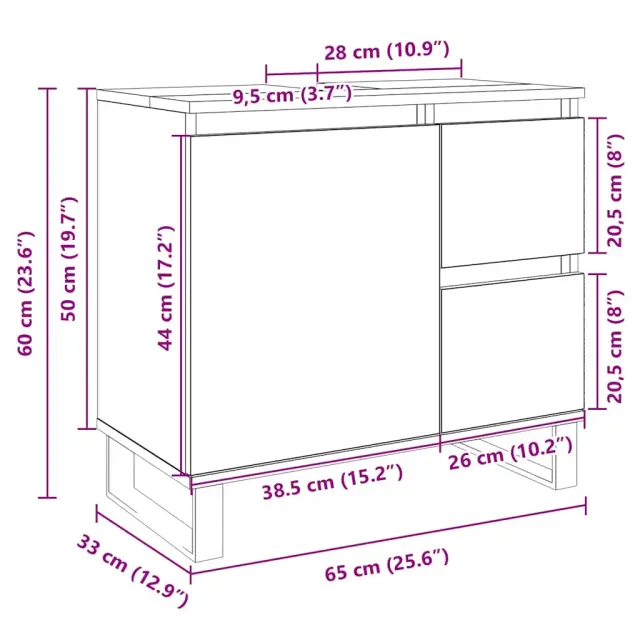 Kopalniška omarica - Kopalniški kabinet sonoma hrast 65x33x60 cm inženirski les