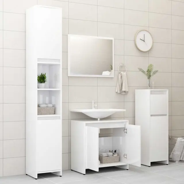 Kopalniška omarica - Kopalniški kabinet visok sijaj bela 60x33x61 cm iverna plošča