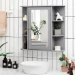 Združuje lepoto in funkcionalnost: Ta stenska omarica združuje veliko prostora za shranjevanje z ogledalom HD in prinaša največje udobje v vaš vsakdan. S svojo preprosto in elegantno obliko se ujema z različnimi slogi opremljanja in je primerna za kopalnice, pralnice, predsobe itd.