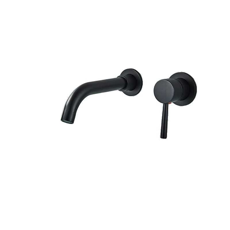 Kopalniška pipa za umivalnik, montirana na steno, enojna ročica, mešalnik tople in hladne vode, mat črna