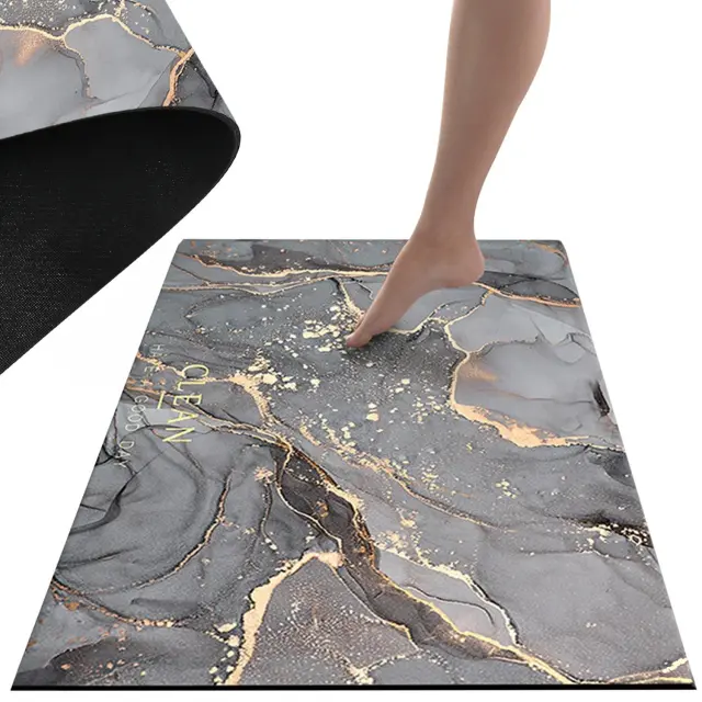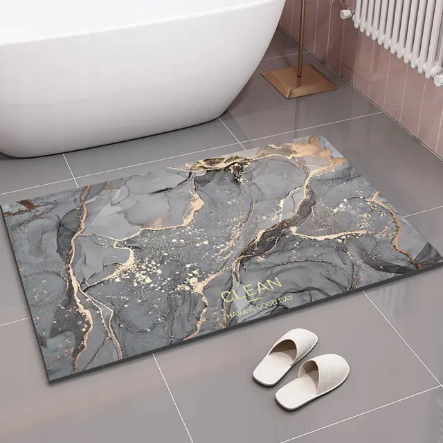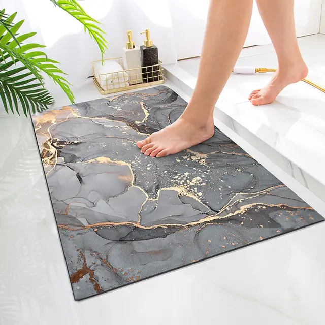IDEALNO ZA KOPANJE Po sproščujočih kopelih ali osvežilnih prhi samem položite nogo našega podloga in občutite, kako se voda takoj vpije. Ubit na polito vodo po mojih ploščicah!