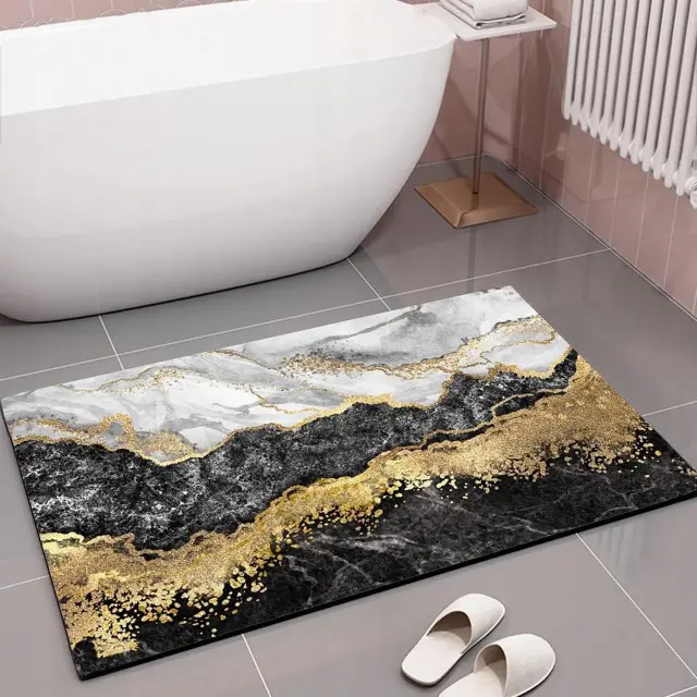 ELEGANTEN DIZAJN Našo podlogo odlikuje stilski dizajn, ki posnema marmor z zlatimi detajli. Dodajte svoji kopalnici pridih razkošja!