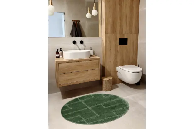 Kopalniška preproga SUPREME krog LINES, linije, nedrseča, mehka - zelena cercle 67 cm