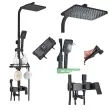 Kopalniška tuš pipa set, dežna zasnova, stenska montaža, črna C z bidetom