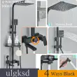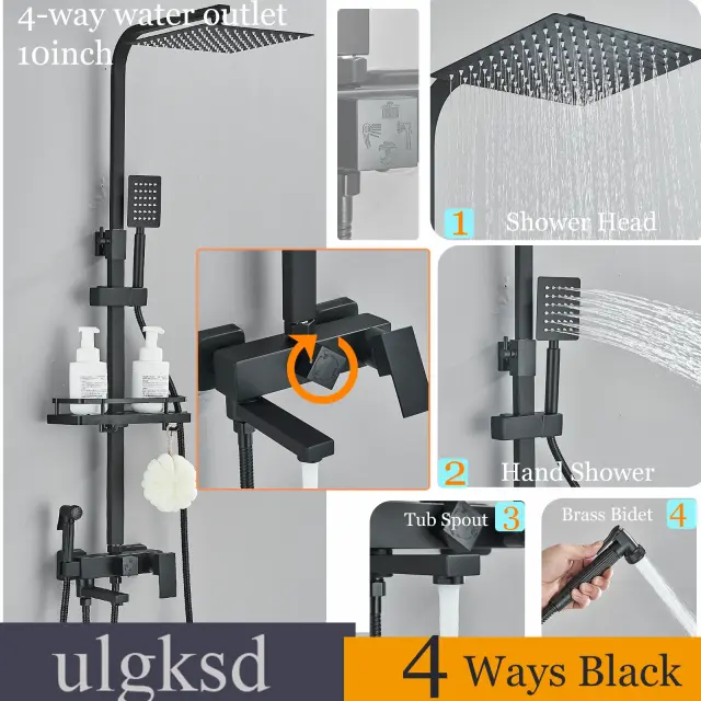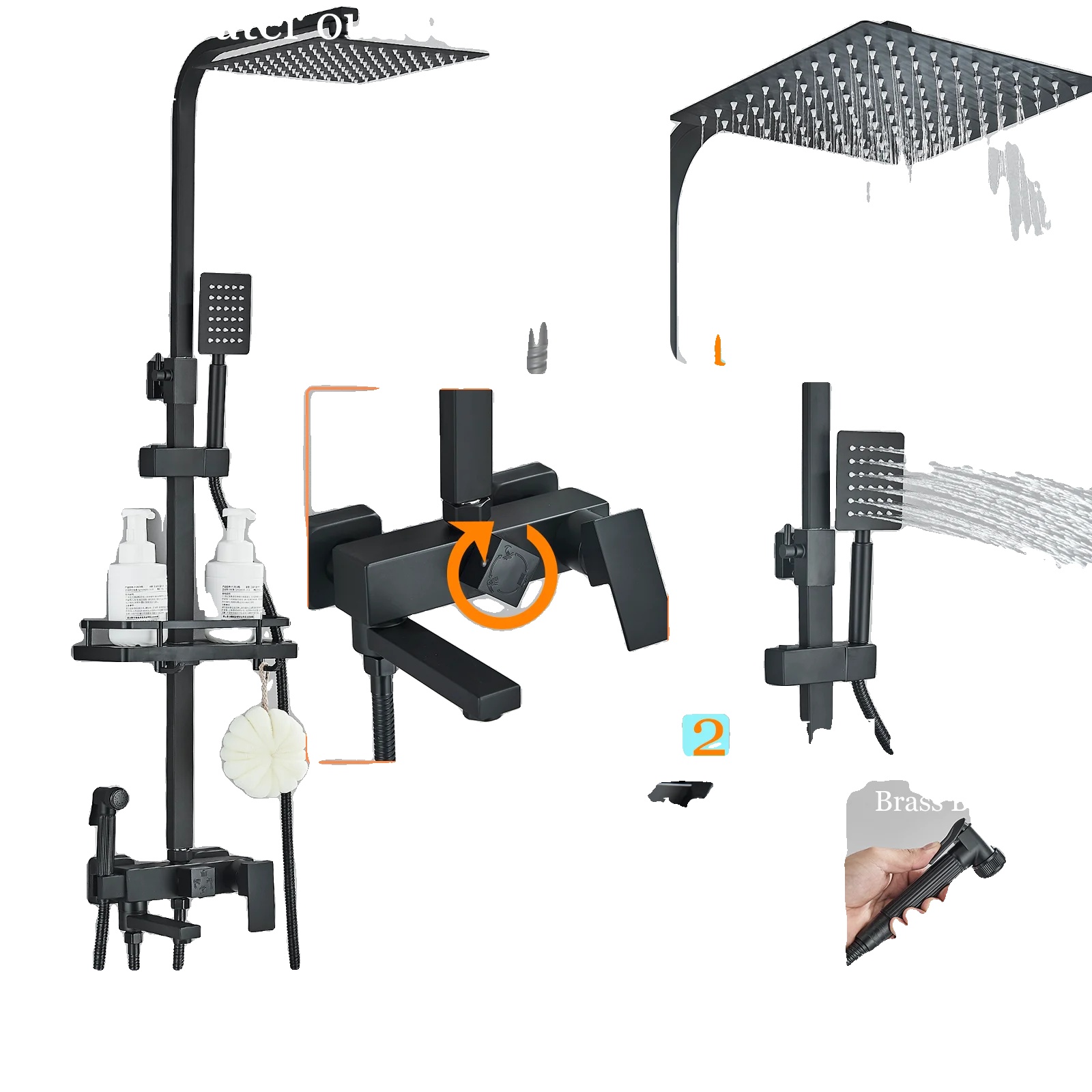 Kopalniška tuš set, dežni tuš stolpec, mešalni pipa iz medenine, 4 načini črna